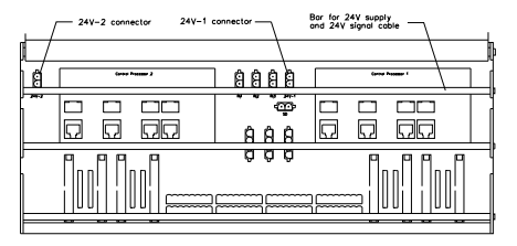 مجموعه کابل توزیع برق FS-PDC-CPSET، برق را از باس بار برق شهری 24 ولت DC مدل FS-MB-0001 به شاسی کنترلر منتقل میکند. این مجموعه شامل 2 کابل برق است، یکی برای هر پردازنده کنترل. کابلها روی کانکتورهای مناسب روی صفحه پشتی (24 ولت 1 و 24 ولت 2) قرار میگیرند.